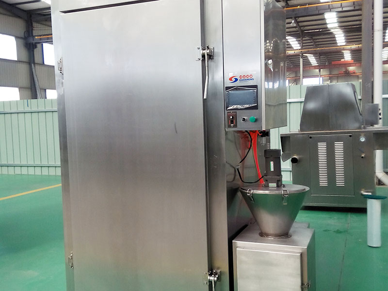 煙熏香味料為淡黃色至棕色液體,具有濃郁的煙熏香氣,可代替?zhèn)鹘y(tǒng)煙熏工藝,使煙熏食品工業(yè)實現(xiàn)機械化、電氣化、連續(xù)化生產(chǎn)。 煙熏爐主要與蒸煮、煙熏、烘干、排風等功能,適用于各種腸類的加工制造,還可烤魚、烤各種肉類。全自動鹽水注射機 本機可將鹽水及輔料配制的腌漬均勻地注射到肉塊中,縮短腌漬時間,大大提高了肉制品的口味太出口率真??筛鶕?jù)工藝要求調(diào)節(jié)壓力,腌漬劑均勻連續(xù)注入肉中,達到理想的注射效果。本機設計嚴謹,結(jié)構(gòu)合理,操作簡便,是肉制品加工過程中的理想設備。本機采用不銹鋼制造,設計合理,結(jié)構(gòu)嚴謹,操作簡單,清洗方便,清潔衛(wèi)生。本機設有保護裝置,當注射針碰到硬物時注射針隨之抬起,不受損壞。